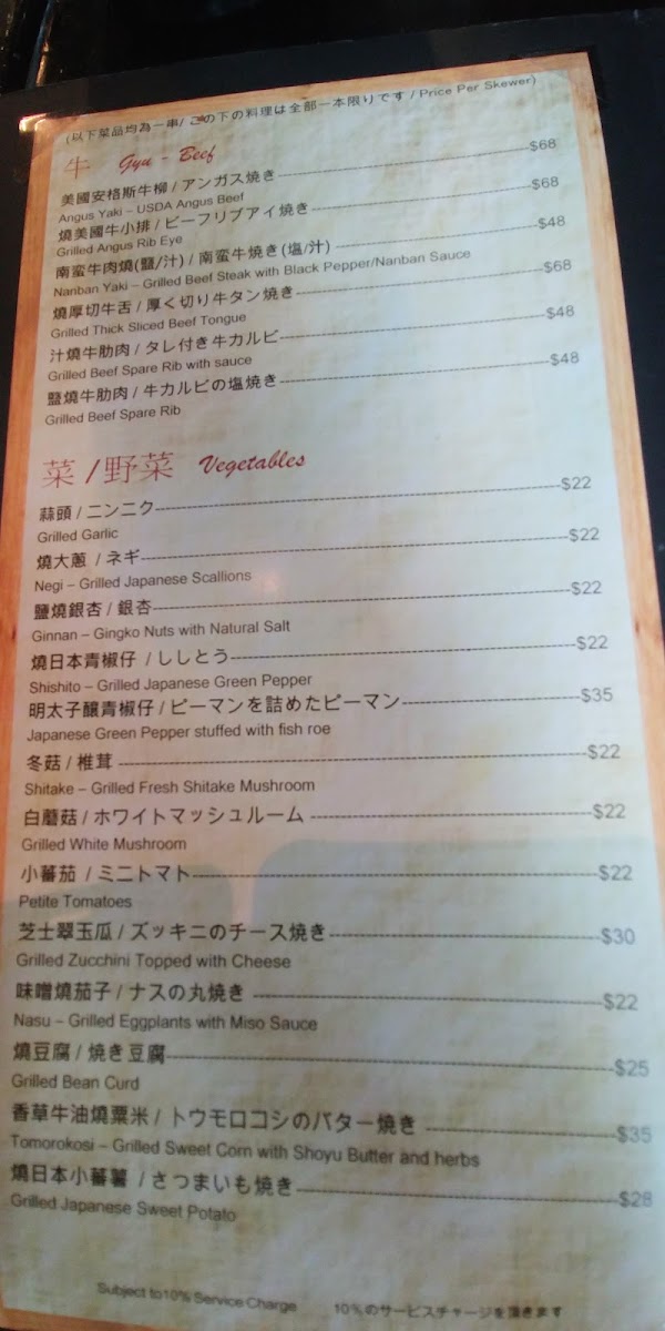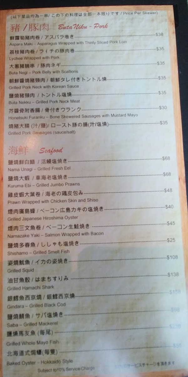 Guests can enjoy a variety of classic grilled items such as tender chicken gizzards, juicy chicken wings, and savory meatballs, alongside more distinctive options like bone-in sausages with mustard mayo and Hokkaido-style baked oysters. The menu also features grilled vegetables and seasonal touches like sweet Japanese potato and asparagus wrapped in pork, providing variety without overwhelming complexity.